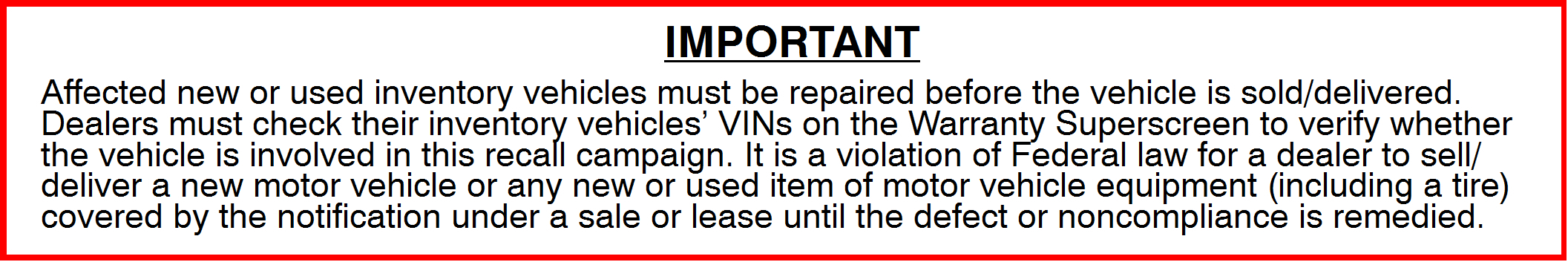 Before starting this campaign procedure, CHECK THE WARRANTY SUPERSCREEN to verify if the vehicle is an affected VIN for this campaign and that this campaign procedure has not already been completed. You must also check the Superscreen for any open SR-16-010 (C1611Z or C1612Z) campaign. To improve customer satisfaction and to prevent the customer from having to return for a separate repair, you must complete any open SR-16-010 campaign at the same time as this campaign. The labor allowance for SR-16-010 has been reduced to encourage the completion of both campaigns at the same time. Portions of SR-16-010 have been incorporated to enable a smooth completion of both campaigns; however, you must make separate claims for SR-16-010 and SR-18-004.