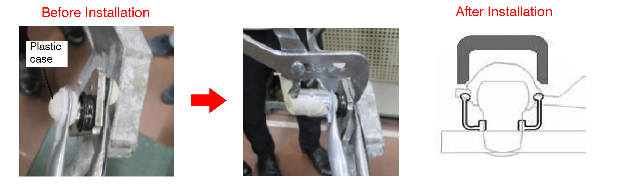 Turn the link plate slowly in the direction shown by the red arrow, so that the ball pin's base is visible (for easier installation).