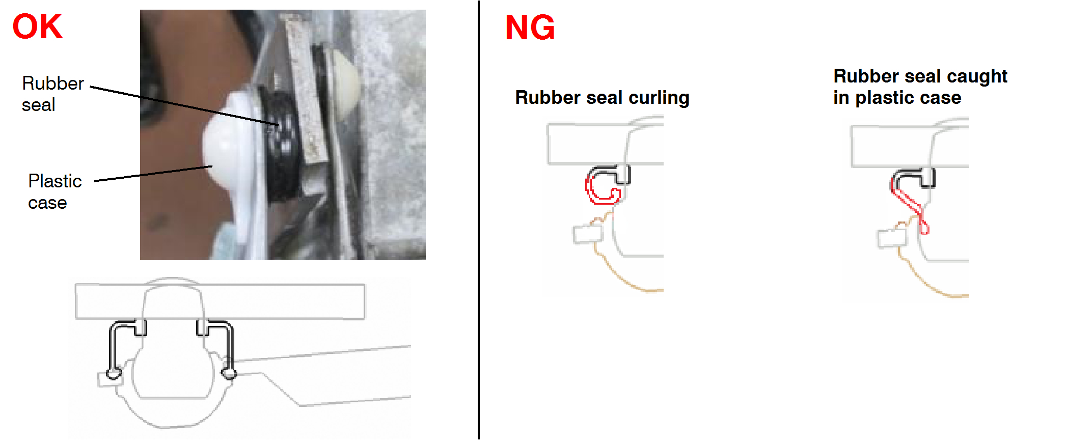 Pull back the rubber seal to prevent damage when performing the following steps.