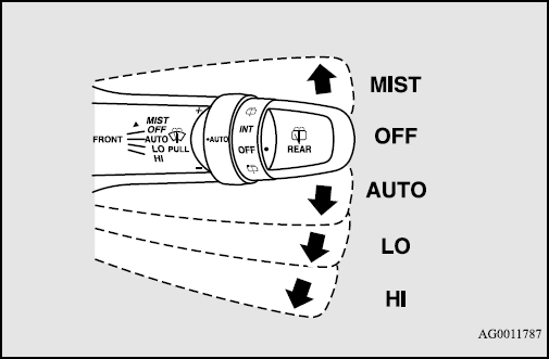 Verify wiper motor operation by turning the vehicle ignition to “ACC” or “ON” and activate the windshield wipers in “LO” and “HI” positions.
