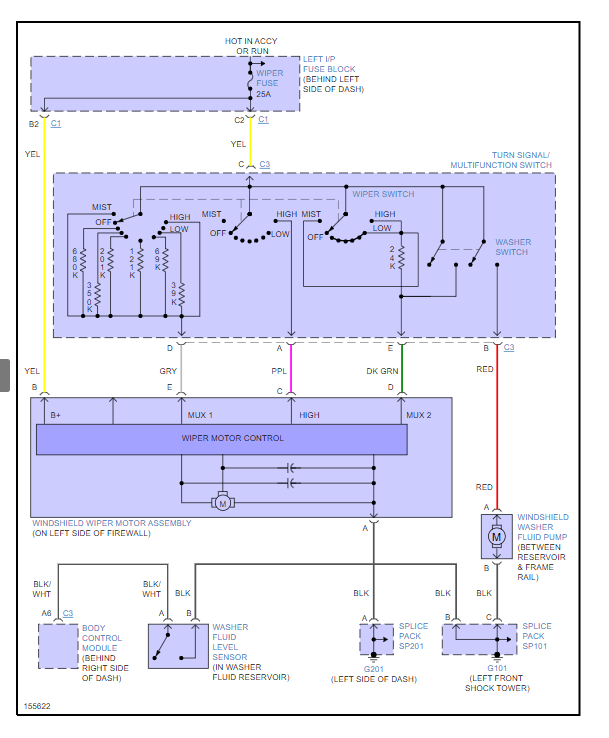 No problem, we can get you fixed up. These are two separate problems. We will handle the wiper on this thread. Please start a new question for the keyless enter problem. First on the wiper motor there will be a yellow wire we need to check for power. This guide can help: