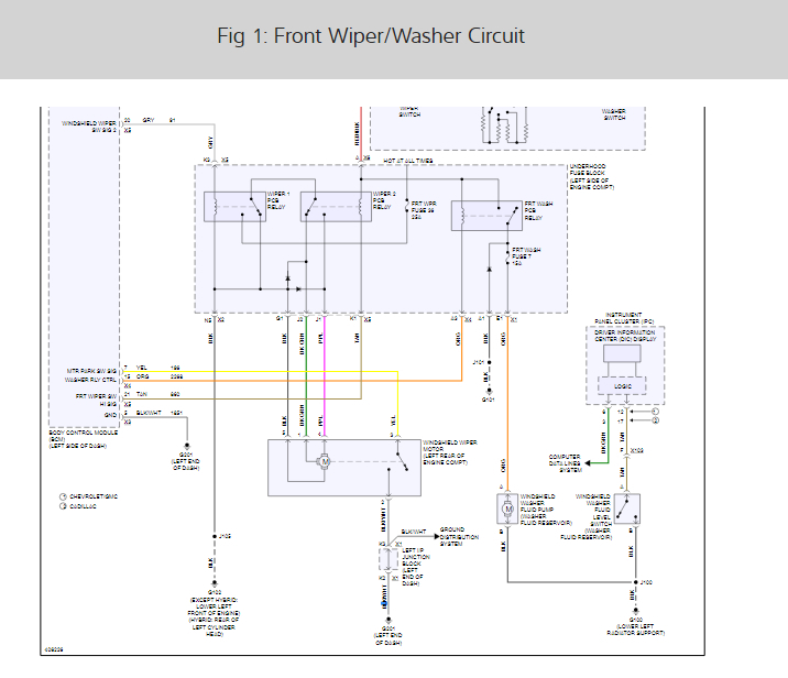 This could be a problem with the ground for the wiper motor having unwanted resistance on it. Ohm's law, the law that governs electricity states that if one of the three properties of electricity is constant (voltage-12.6V in a vehicle), then if one of the other two goes up(resistance-corrosion/dirt/grease on ground) the last property(amperage-electrical flow from battery)must go down proportionally. This is why no matter what setting you have the wiper speed switch set to your wipers wipe slowly. In the diagrams down below I have included a wiring diagram of the washer/wiper system on your vehicle for reference. The ground in question here is Ground #102 which is located on the lower left front of the engine. I have also included a guide for you on how to properly inspect and clean grounds. Please go through all these guides and get back to us with how the ground looks and what you are able to find out.