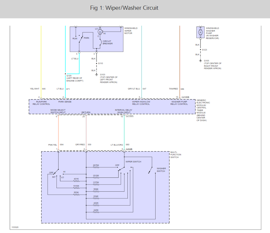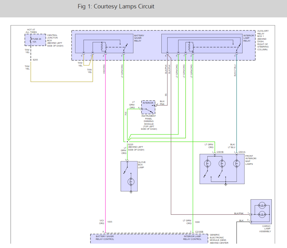 Here are the wiper and interior light wiring diagrams so you can see how the work with the GEM with the location of the GEM which is behind he center of the dash so you can replace it.