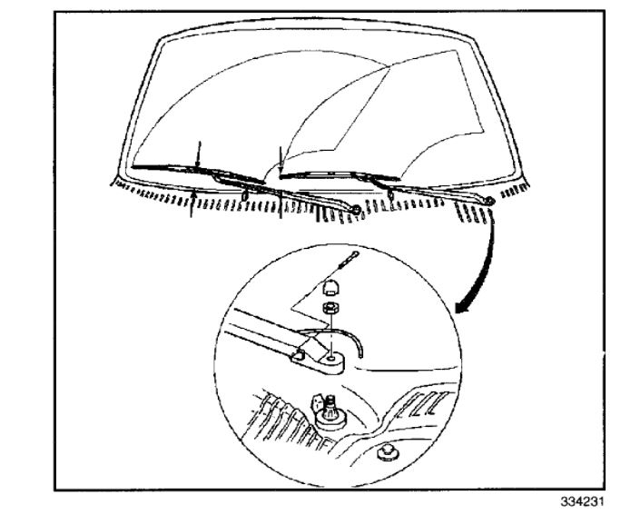 3. Turn OFF the ignition when the wiper arms are paused at the bottom of the wipe pattern.