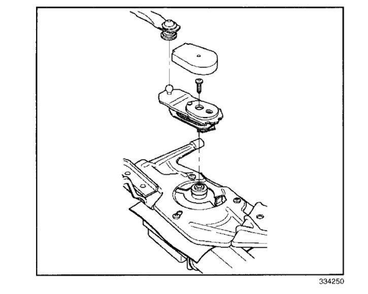 8. Tap on the screw with a soft-faced mallet while holding up on the wiper motor crank arm until the wiper motor crank arm is loose on the wiper motor.