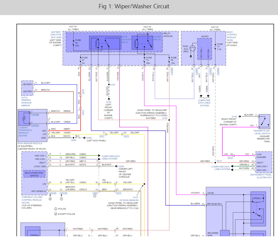 There are five fuses that run the system I would check those first (94, 95, 96, 37 and 13 on the inside fuse panel), here is a guide to help and the fuse locations, I have also included the wiper wiring diagrams so you can see how the system works.