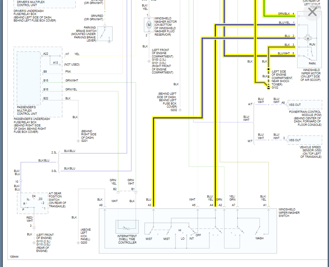 The other day my wipers got stuck in the up position. I just pushed them down and went on my way. I noticed that they only work in the mist mode, and even that isn't working correctly. Usually I just have to press it once for it to make 1 full wipe of the windshield. Now if I let go it will stop wherever they are at the time so I have to catch them when they're down. But the slow or fast speed isn't working at all.