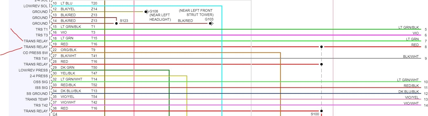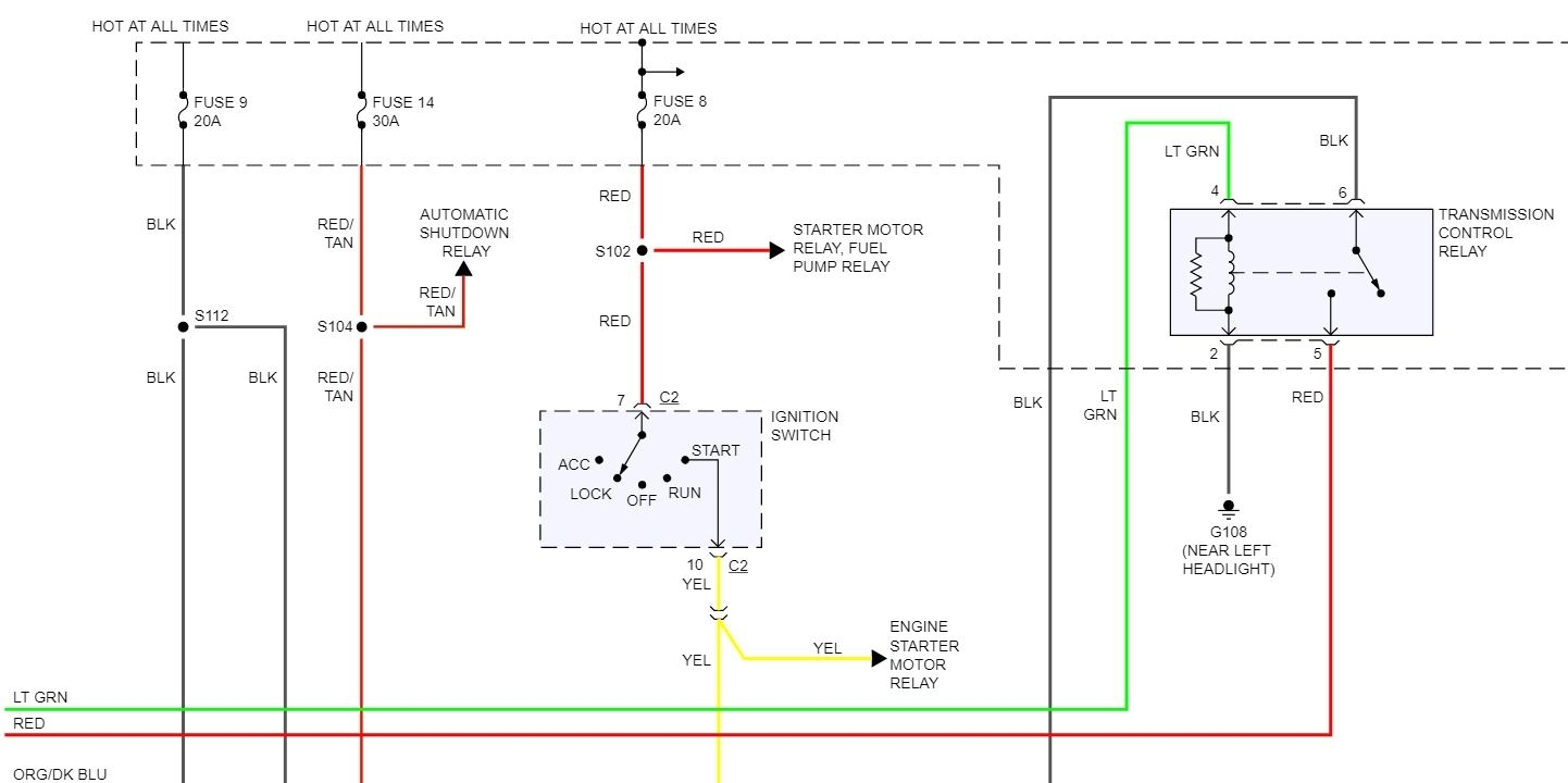I'm trying to get the diagram for which wires go from the relay to the PCM. I'm getting done p0888 and getting only 0.3 volts and other times 12. so there's got to be a wire that's broke but hanging on by a thread.