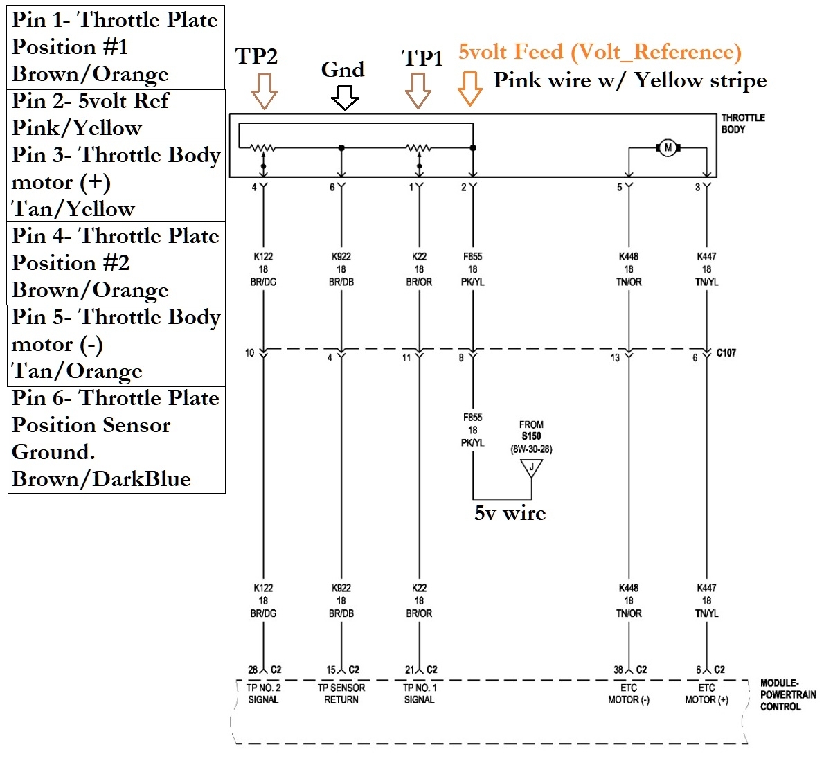 I have written to you about my truck before. Long story is it hasn’t run right since I have had it. I started out replacing the fuel pump, replaced the gas pedal position senser, the throttle body, and a few other sensers. My next step that I can figure out is it maybe the PCM, but I don’t want to throw money at it unless I can get it going. So, I want to check to see what the voltage going to the PCM and what is coming out, the voltage at the throttle body and gas pedal position senser. Can you tell me the colors of the wires I need to check and the voltages at each.