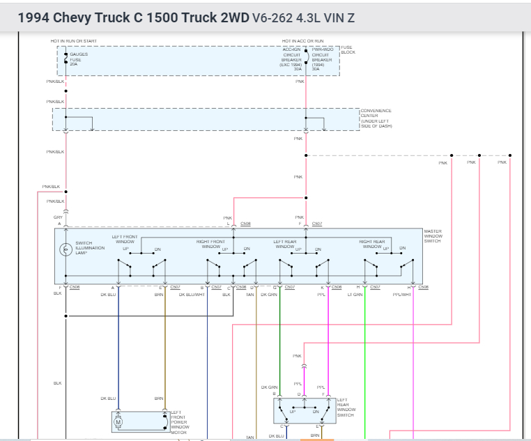 I have the truck listed above that has no power locks/windows. I recently was told GM wire some trucks with a harness even if it wasn't installed with that option. I removed kick panel and door panel and there are wires in wire loom (looks factory/aged) but they don't go to anything. Colors are as follows. White or possible light brown can't really tell because of age of wire green, blue, dark brown and black. Can someone tell me what these wires possible are and which ones are what. I plan to do power windows/locks? Any help will be greatly apricated.