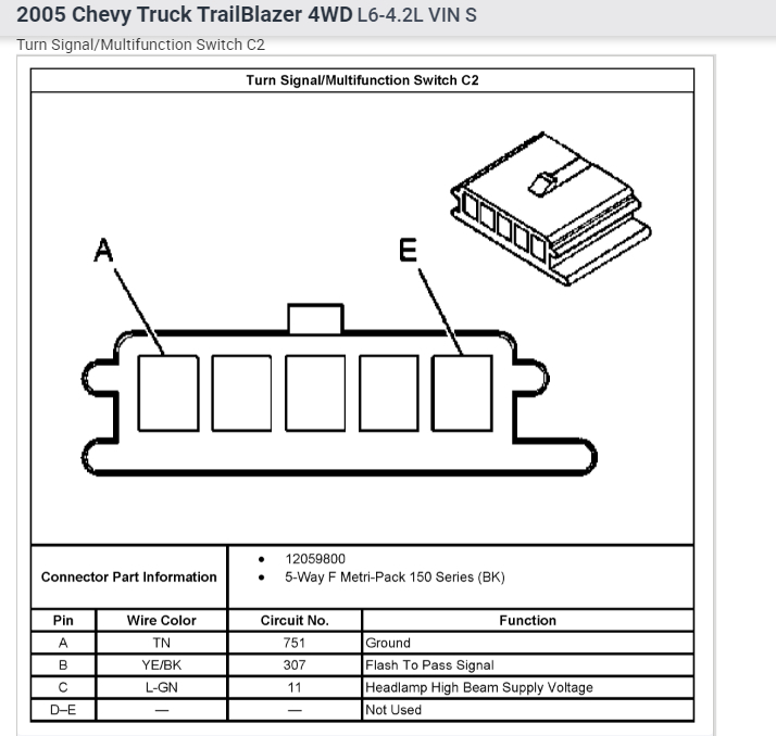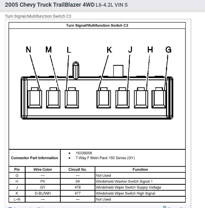 Replaced steering column and turn signal harness used a 2005 Trailblazer in a 2004 s10 blazer looking for a pinout for the Trailblazer to get the lights to work.