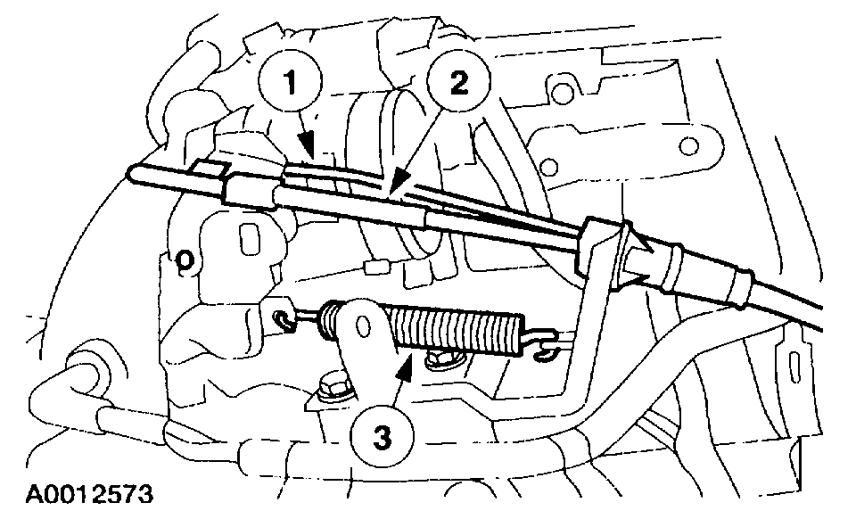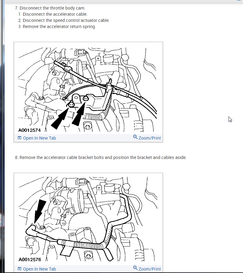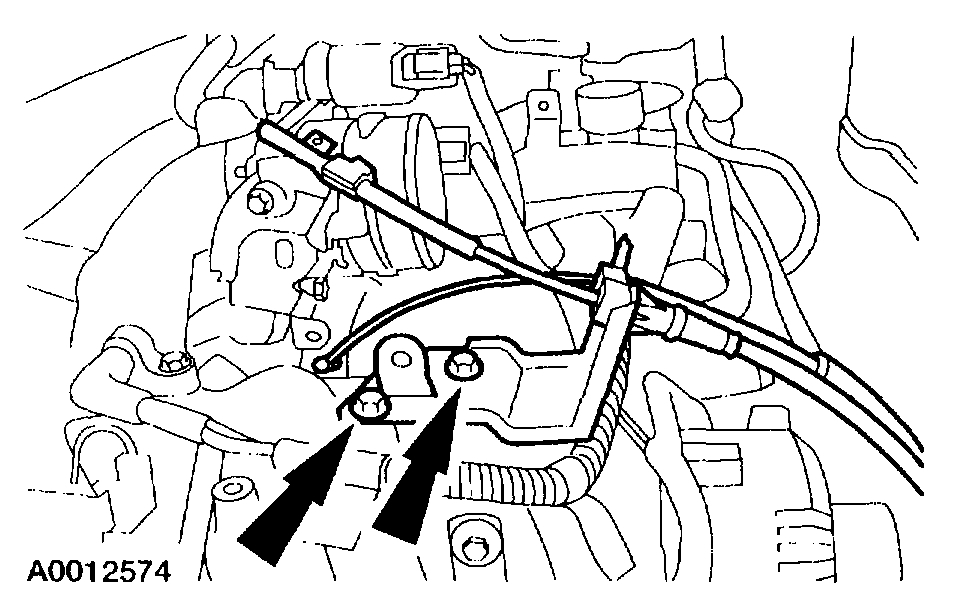 8. Remove the accelerator cable bracket bolts and position the bracket and cables aside.