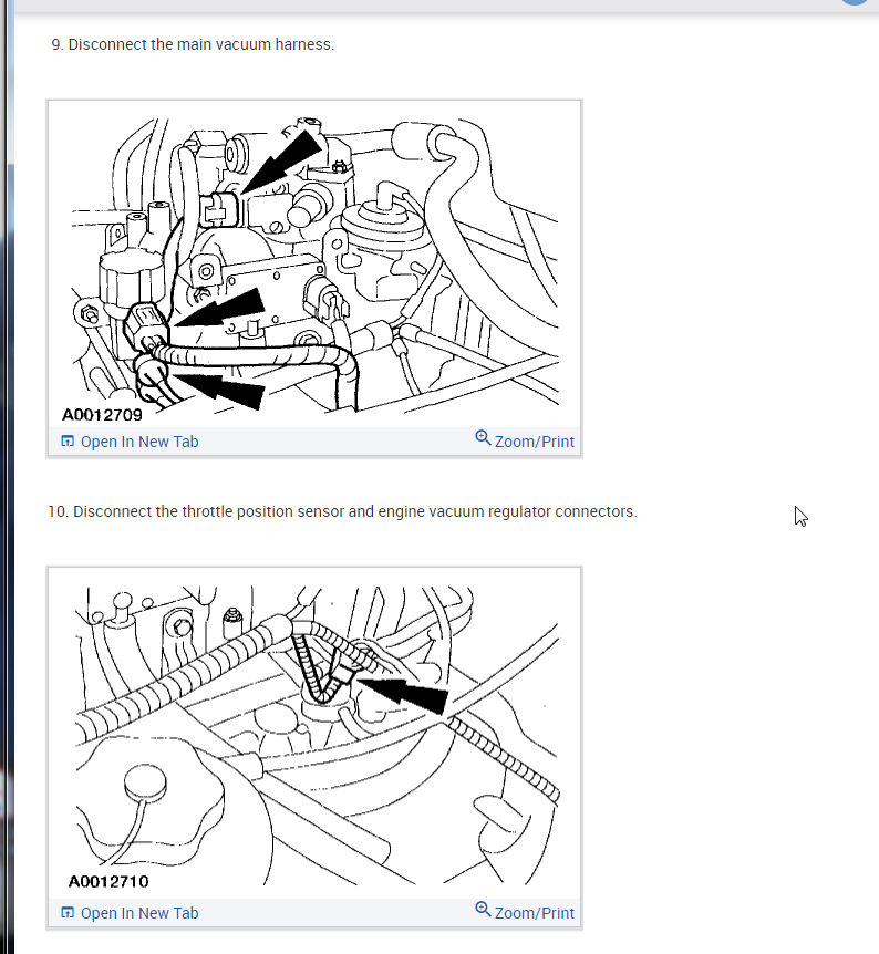 10. Disconnect the throttle position sensor and engine vacuum regulator connectors.