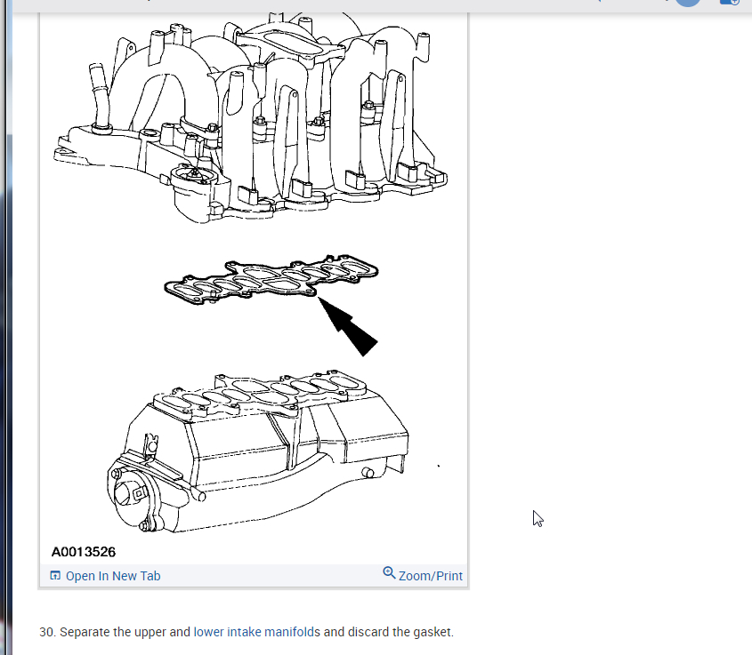 30. Separate the upper and lower intake manifolds and discard the gasket.