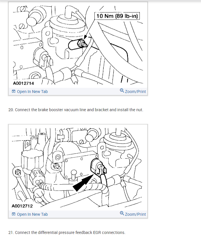 20. Connect the brake booster vacuum line and bracket and install the nut.
