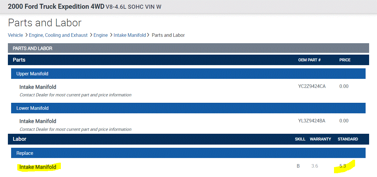 Vehicle Engine, Cooling and Exhaust Engine Intake Manifold Service and Repair Procedures