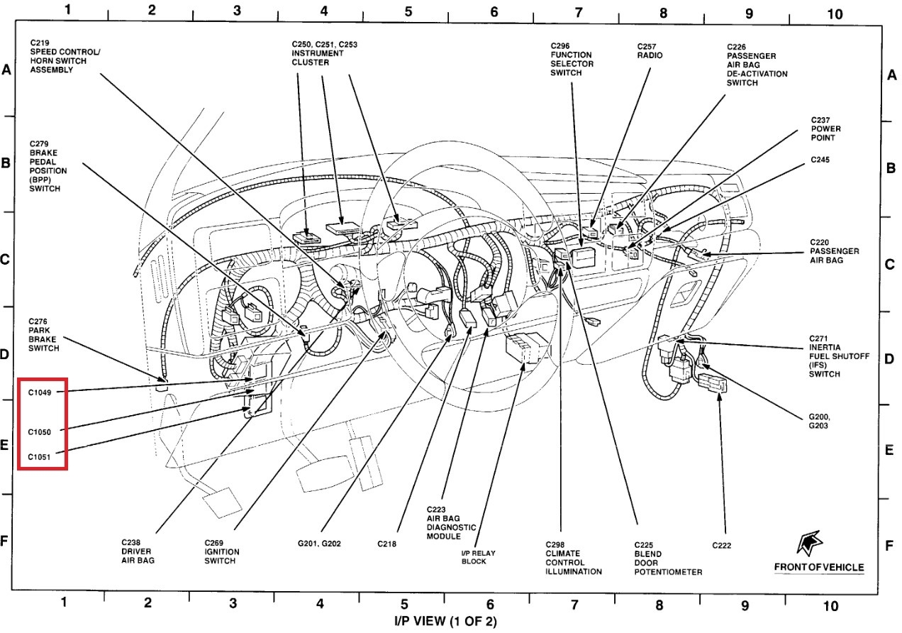 Service info this old doesnt always show the locations of components or connectors in all cases. But this should help, it looks like from the dash view here, C1049, C1050, or C1051 could be one of the connectors youre trying to ID being in that location, Im pulling up those connectors right now for you.