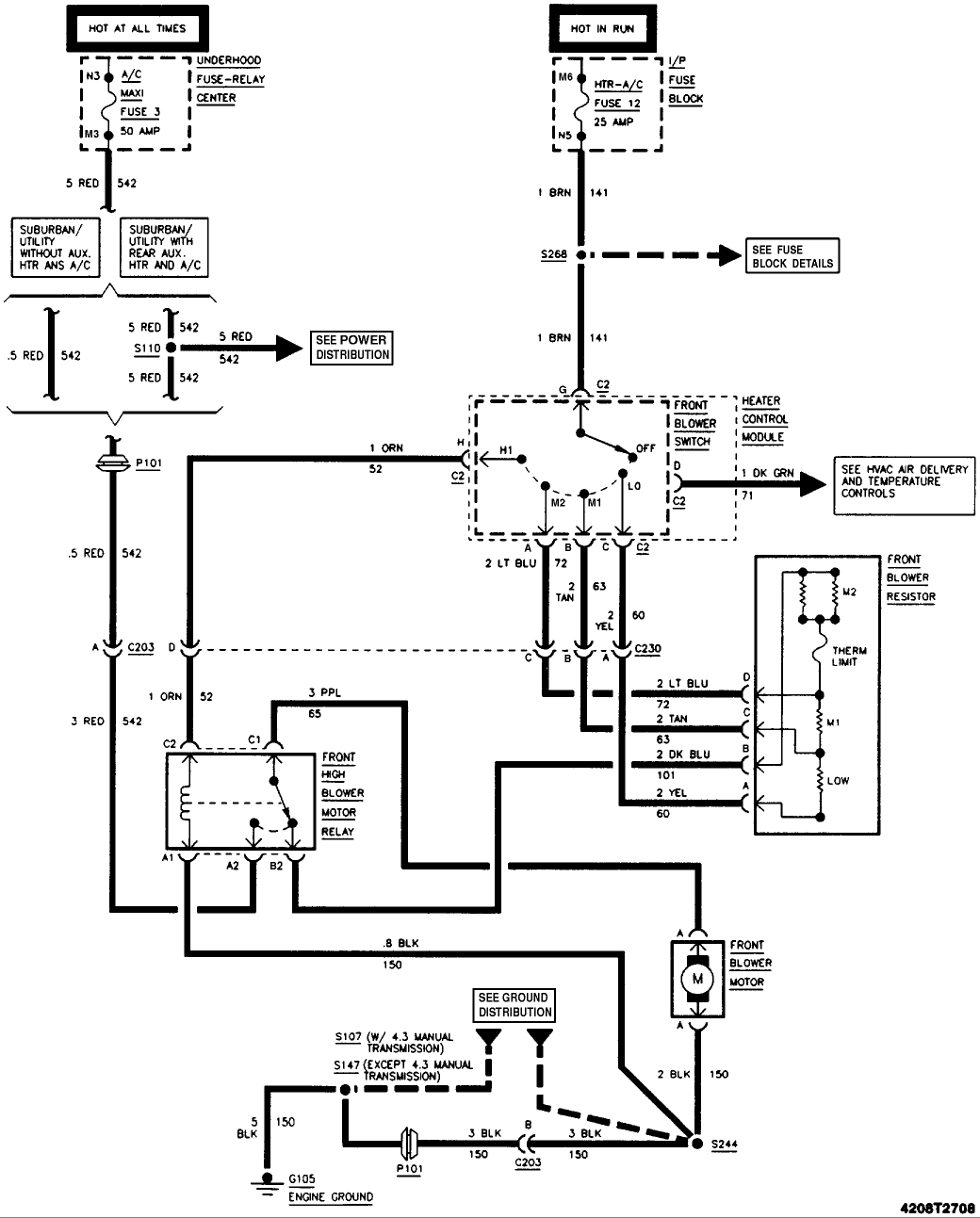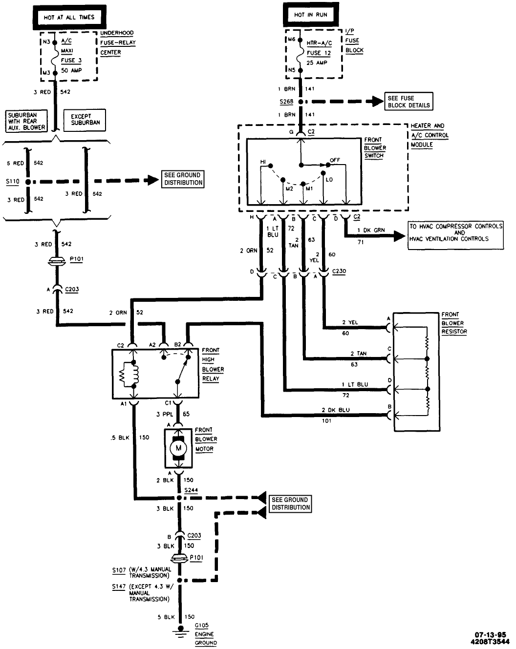 Then the replacement harness is not correct. There are two versions for that truck, one has AC the other does not. The wires to the blower motor itself are simple. One power One ground. The rest depends on which control system you have and if it has AC or not.