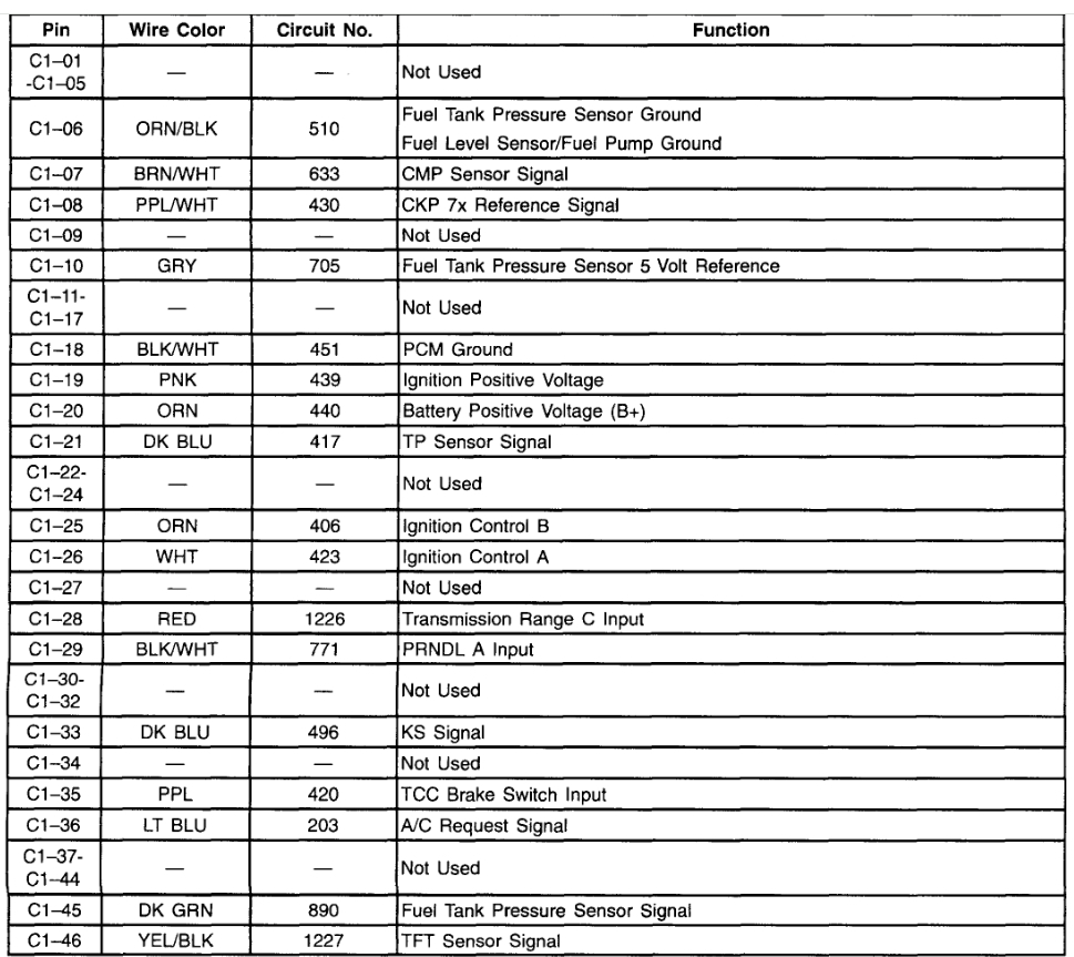 The wiring harness fried have a doner harness from a 2001 s10 2.2 and need computer and fuse block pinouts and harness pinouts for computer, please. any help is great.