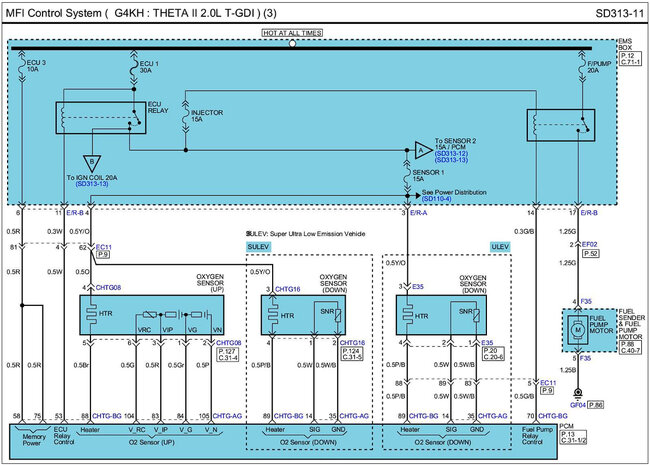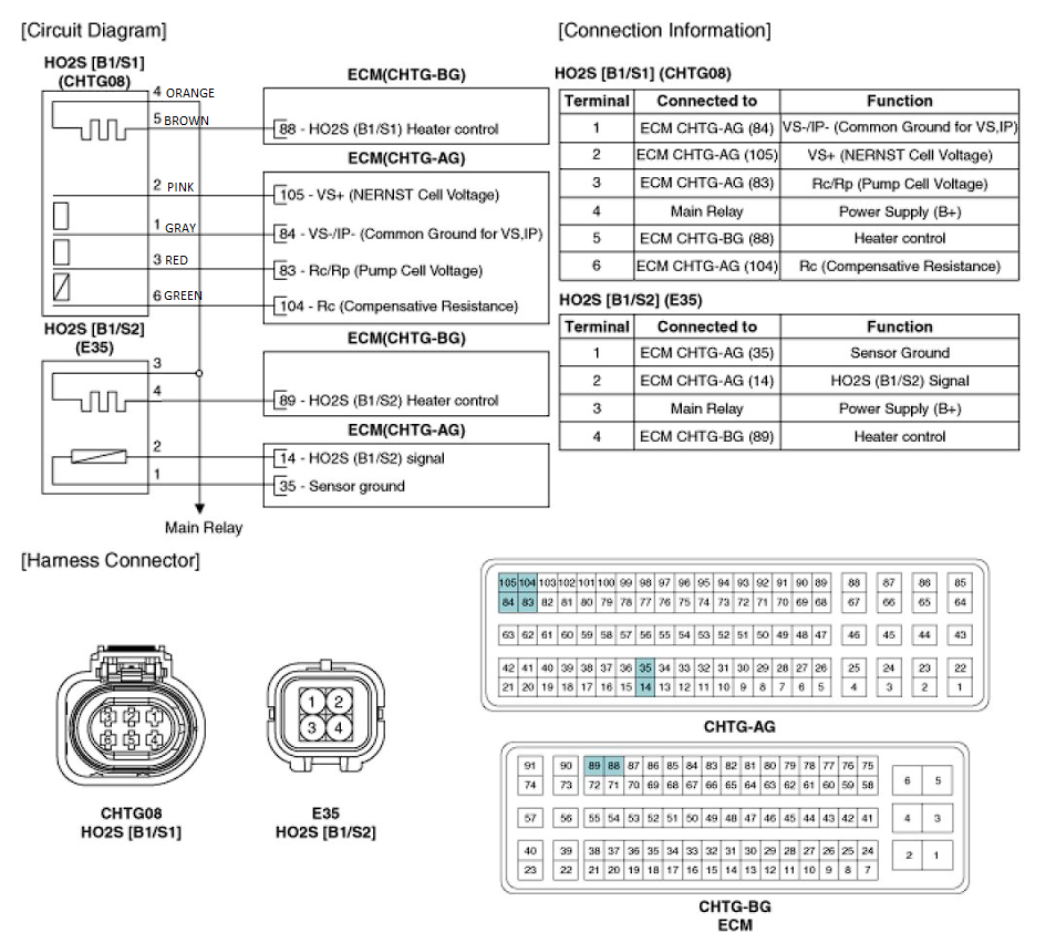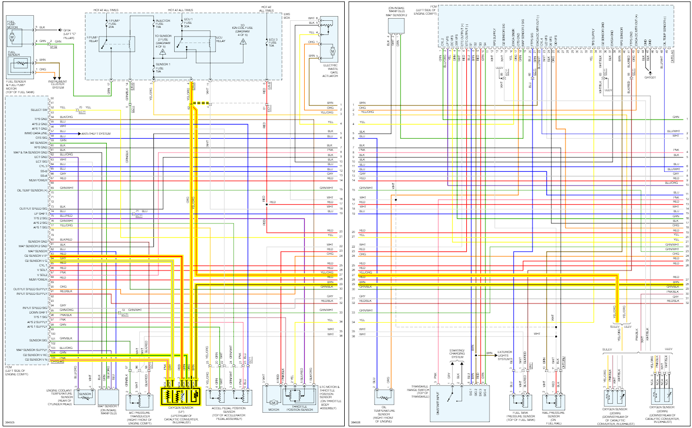 Wiring color code diagram for the 02 sensor bank 1 sensor 1 to the ECM needed.