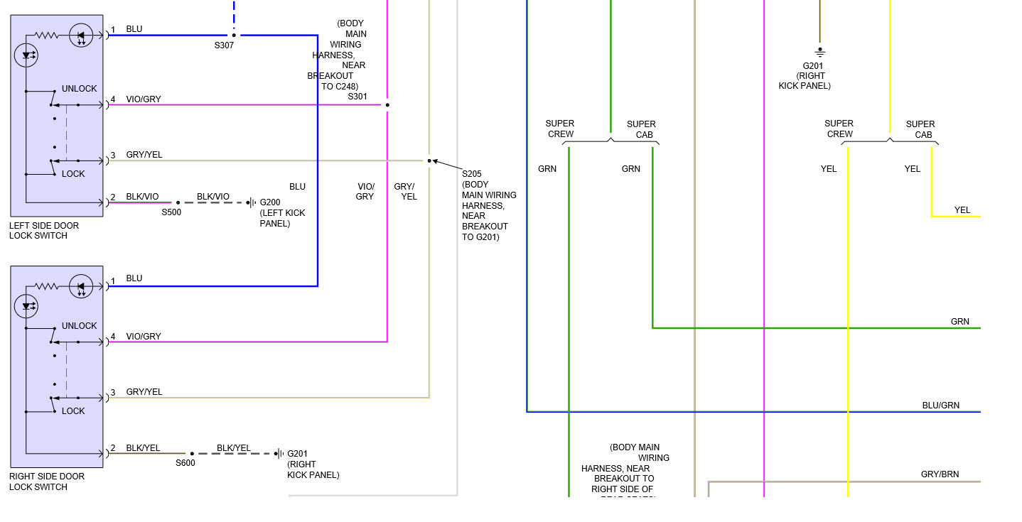 I am looking for the wiring configuration/ pin out for the power windows and power locks for a 2009 F-150 super cab.