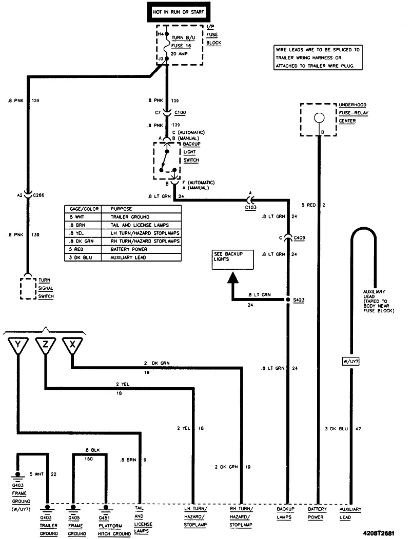 I guessed at a C1500. The diagrams are the same for the "K" series 4-wheel-drive model. These first two are for the signals. Next is the taillights, and the last is for the trailer tow package. If these are too small to read, first try to copy them into a typing program such as MS Word where they can be expanded. I can also cut them into pieces that can be expanded and posted separately if that will help. Let me know if this helps.