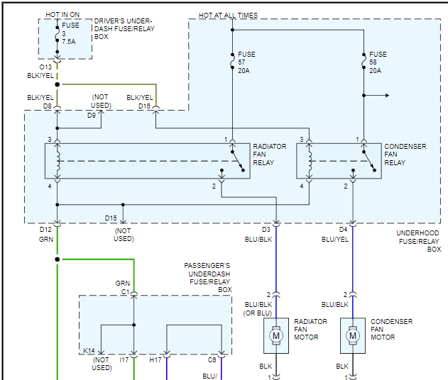 Hello guys. When ignition key is turned to "run" I am getting engine cooling fans on [high] and fuel pump not priming. Can I get the Engine Cooling Fans and Engine Management wiring diagrams please? Thank you.