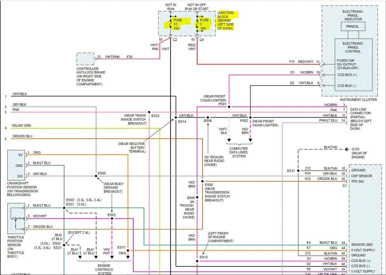 Hello, I hope you can help. I ran something over on the road and it cut my big wiring harness by my transmission clean in half. About 57 or so solder connections later I have her running again but now stuck in limp mode. My codes are p0700 and p1782 I have found that one of the speed sensors got yanked in half as well. I have replaced that one but still in limp. I'm in need of a wiring diagram to check my work and was also wondering g if the TCM and speed sensors are bench testable. Nothing else seems to jump out at me that it's broke so I think I have to check all the wires pertaining to my codes for continuity. And help you guys can give would be greatly appreciated. Thanks, Jay