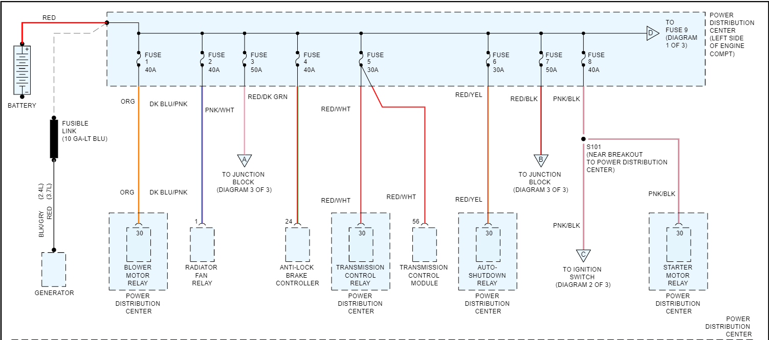 On the vehicle listed above I am in need of where the wires that go from the fuse box to the alternator to battery run to, I am needing to change the harness completely out. I have it all unhooked from the top of the engine.