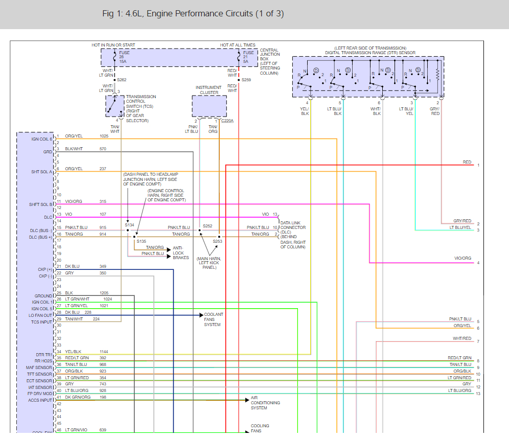 "Someone cut the wires before the connector that goes to coils, fuel injectors, I think cold air intake, alternator etc. Can you show me how the wires the color and hole it goes in it is a 42 pin but has I think 32 wires it is a Mustang gt 2002 gt 4.6 engine I never did schematics so a picture would be great. I am going to read and try to learn but need to fix car faster than I can learn . Please help.