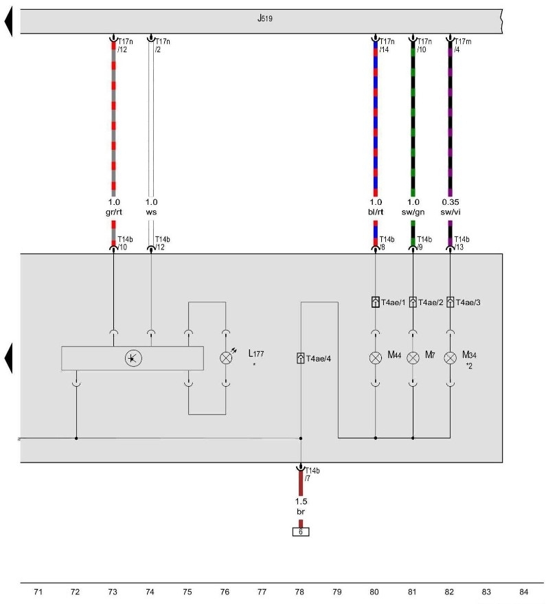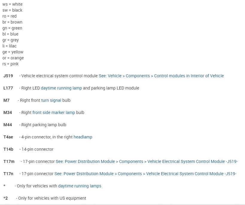 These are the diagrams for the light modules. The first one is just the right-hand lamp module. The other 7 are the OE wiring diagram and the key for the symbols and colors. If the wires pulled free with the contact pins be sure to bend the retainer tangs out so they clip in when you put them back.