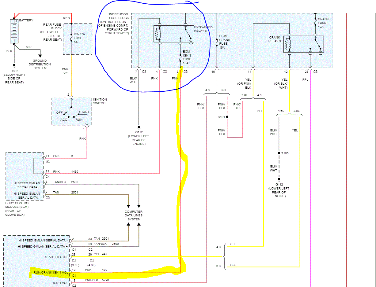 Checked C1 pin 19 (pink) on the ECM for power from run/crank relay (R6)