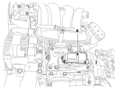 3. Remove the 2 bolts holding the starter, then remove the starter (A).