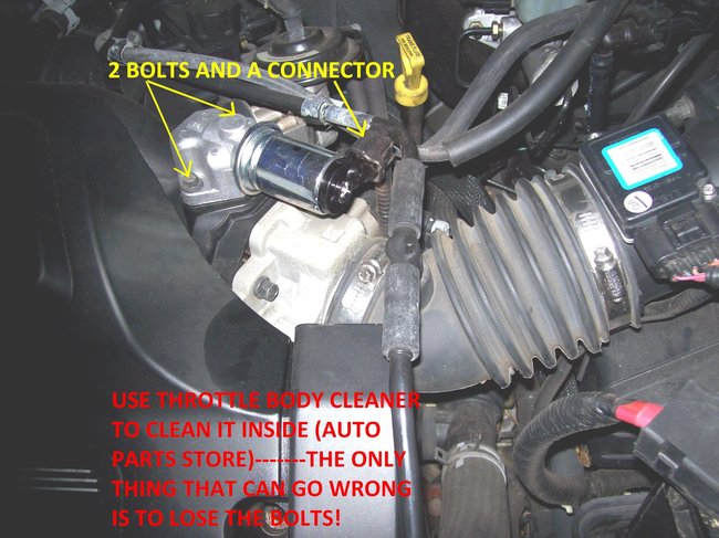 The IAC is kind of on top of the throttle body and has 2 bolts.
