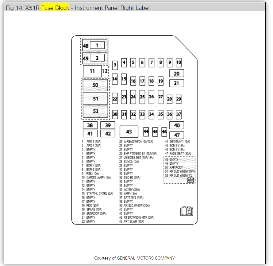 Here are the the fuse panels check all fuses with the key on and how to replace the encoder motor if the fuses are okay. Check out the diagrams (Below). Let us know what happens and please upload pictures or videos of the problem.