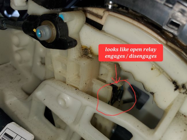 i know there's the parking control switch under the shifter if that's what the diagram shows and there is 4.5 v on one wire and ground on the other. The two blue wires control that open relay on the other side of the shifter and does engage and disengage when I attempt to shift. I can still here the clicking in the steering column.