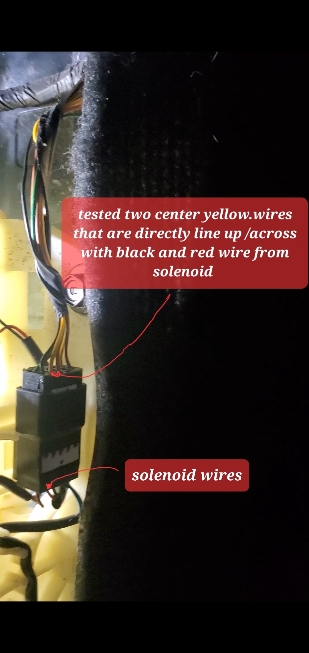 Thanks for the pics and video, it helps. The fact that you have power and ground, and the solenoid is still not working it tells me the unit is bad. nice gloves I use the same color blue, they really help when working on cars. Let me know what happens.