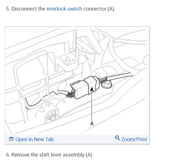 so, once removed console cleaned it up. checked cable and cable bushing, stepped on brake with KOEO and tried to shift no luck. Also, besides hearing the click by the steering wheel. in the back of the shifter when I attempt to shift, I hear the clicking and see the part work, looks like a open relay. i then disconnected connector and tested the red and black wire coming from the car and there was both ground and battery voltage, plugged it back in, tapped on solenoid and, still nothing. I'm leaning towards the shift solenoid. but Hyundai said it's $100.00 and no returns if order it. So, I want to be sure. The guy at Hyundai said from his image for the part it looks like its pigtails in to wire connector. would I remove the white tab on back of main connector on shifter and then remove wires to solenoid and plug the new ones in? I don't know what the other wires on the shifter go to but will look at diagram. Any other test i can do to test solenoid.