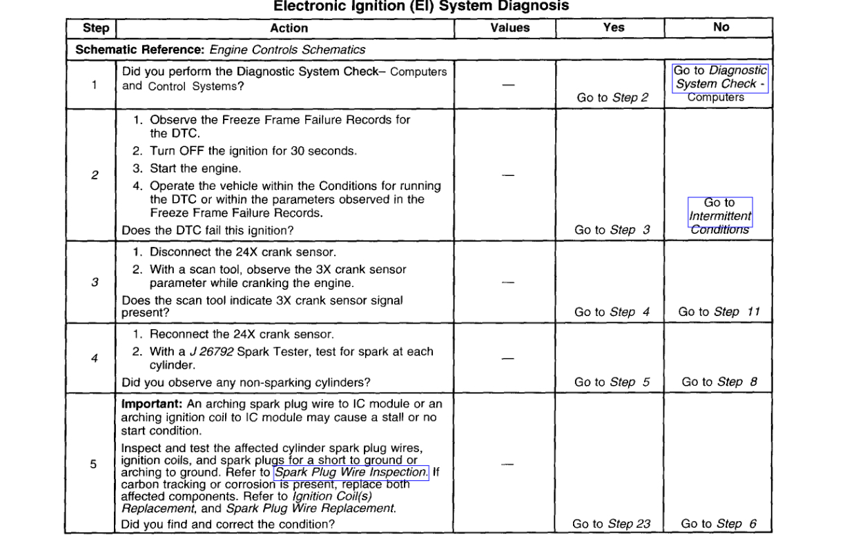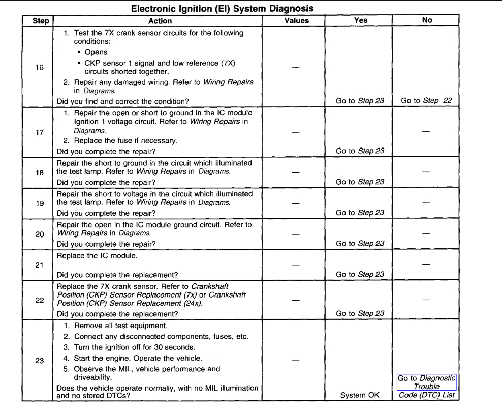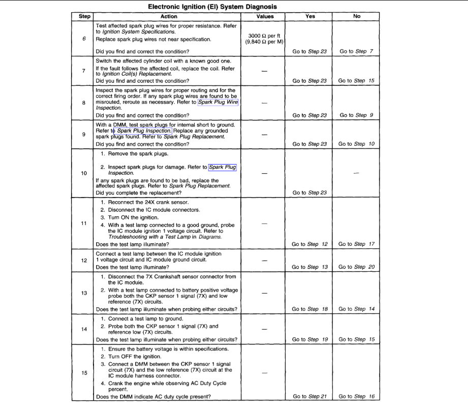 This sounds like you could have a problem with your vehicle's Ignition Control[IC] Module. To be sure though, I have included in the diagrams down below a diagnostic troubleshooting flowchart from the vehicle manufacturer for your vehicle for you to go through. Please go through it and get bak to us with what you find out.