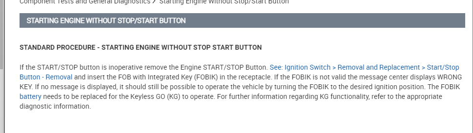 I just bought a 2014 Challenger and it started fine but the previous owner was using the key fob inserted in the push button start ignition to start instead of the push button. I was told by the previous owner that the battery was dead in the key fob. I took the fob out of the ignition and put a new battery in the fob but when I tried using the push button start on the dash it gave a message saying "key fob damaged". So I removed the start button and reinserted the fob into the ignition. It worked just as before when I started it the next morning but when I went to start it that evening it would not start. I have tried for the past 2 days to figure out what happened but only have been able to get it to start 1 more time and it immediately died. Any advice on what has may have caused this and how do I fix it?