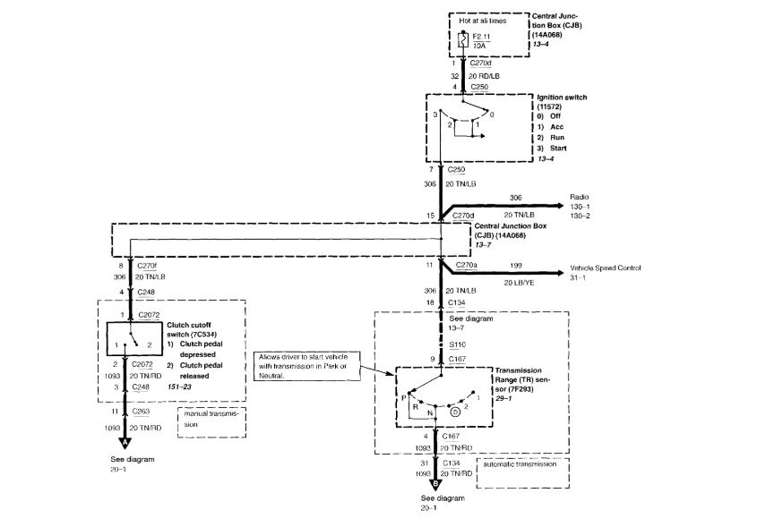 Reference Number(s): 06-9-3, Date of Issue:  May 15, 2006 Related Ref Number(s): 06-9-3 ARTICLE BEGINNING ISSUE Some vehicles may exhibit a powertrain control module (PCM) concern that results in no crank, no start, or malfunction indicator lamp (MIL) with one or more diagnostic trouble codes (DTCs) present. There may also be intermittent or inoperative power windows, door locks, keyless entry system, lighting, speed control, radio, instrument cluster warning lamps (possibly dimly illuminated instead of being off), or other electrical accessories. The concern is typically more noticeable in wet and/or cold weather conditions. This may be the result of connector terminal corrosion in C134, C263, or the central junction box (CJB) which results in either high resistance between the male and female terminals or a short between two or more circuits due to bridging through any corrosion that may be present. Corrosion in C134 may be the result of improper positioning/sealing of C134. Corrosion in C263 or the CJB may be due to a water leak in the left hand A-Pillar area. ACTION Follow the Service Procedure to inspect and repair the connector terminals for evidence of corrosion. Repair any sources of water entry. If no signs of corrosion or water entry are found, follow normal diagnostics. SERVICE PROCEDURE Inspect and repair the following connectors: C134 1. Open the hood and locate C134 ( Fig. 1 ). Fig. 1: Connector C134 Location 2. Disconnect the connector halves and thoroughly inspect the terminals. Clean any corrosion that may be present and replace any damaged terminals. 3. Use shop air to blow out any moisture that may be present in the terminals, then apply : FORD: 2001-2004 Escape NOTE: WHEN DIAGNOSING THE CAUSE OF A PCM FAILURE IT IS CRITICAL THAT THIS INSPECTION AND REPAIR PROCEDURE BE COMPLETED IN ITS ENTIRETY BEFORE INSTALLING A REPLACEMENT SERVICE PART. THE POSSIBILITY EXISTS FOR A 12 VOLT SHORT TO THE 5 VOLT VREF (CIRCUIT). INSTALLATION OF A SERVICE REPLACEMENT PCM WITHOUT ELIMINATING THE 12 VOLT SHORT WILL RESULT IN REPEAT PCM FAILURE.dielectric grease to the terminals in both halves of the connector. 4. Reconnect the connector halves and close the hood. C263 1. Open the drivers door and remove the lower kick panel. 2. Locate C263 as shown in Fig. 2 . Fig. 2: Central Junction Box Harness Connector Locations 3. Disconnect the connector halves. 4. Pry out the terminal retainer as shown in Fig. 3 and thoroughly inspect the terminals. Fig. 3: Terminal Retainer Removal 5. Clean any corrosion that may be present and replace any damaged terminals. 6. Work dielectric grease into the side opening in the connector, then reinstall the terminal retainer. 7. Apply dielectric grease to the terminals in both halves of the connector. 8. Reconnect the connector halves. CJB (CENTRAL JUNCTION BOX) 1. Locate the CJB ( Fig. 2 ). 2. Disconnect the four harness connectors from the front and the two connectors from the rear of the CJB, and remove the CJB. 3. Inspect the terminals and also the back side of the CJB or evidence of water damage or corrosion. 4. Clean any corrosion that may be present and replace any damaged terminals or components. 5. Apply dielectric grease to the terminals in the harness connectors. 6. Reconnect the six harness connectors and reinstall the CJB. 7. Reinstall the lower kick panel. NOTE: THE CORROSION WILL NOT BE VISIBLE UNLESS THE TERMINAL RETAINER IS REMOVED. NOTE: IF ANY CORROSION WAS FOUND IN EITHER C263 OR THE CJB, THE SOURCE OF THE WATER ENTRY MUST BE IDENTIFIED TO PREVENT A REPEAT REPAIR.