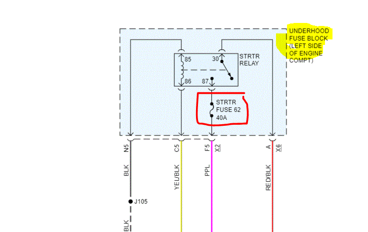 If the starter doesn't engage, try starting it in neutral. If it still doesn't start, check fuse 62 in the under hood fuse box. See pic 1.