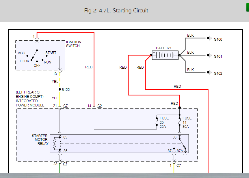 This could be a problem with Fuse #20(25A) in the Integrated Power Module on the left rear of the engine compartment. In the diagrams down below I have included a wiring diagram of your vehicle's starting system and a diagram and callout for the Integrated Power Module. Here is a link for you to go to as well, if you are unfamiliar with how to check a fuse.