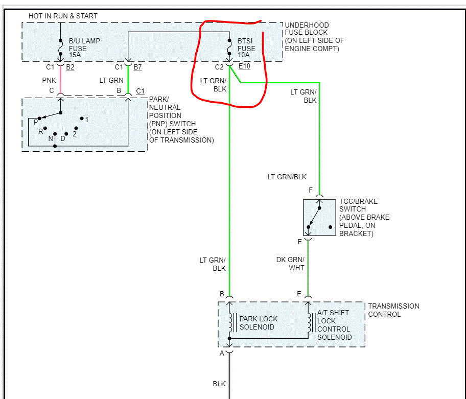 Stopped and got gas at the gas station. I came back out to the car to leave and it would not start and would not come out of park. It doesn't even try to start. But all the electrical works lights ,radio. Bought a new battery and still doesn't crank or come out of park. It did have a blown ign fuse, i also replaced it and still nothing.
