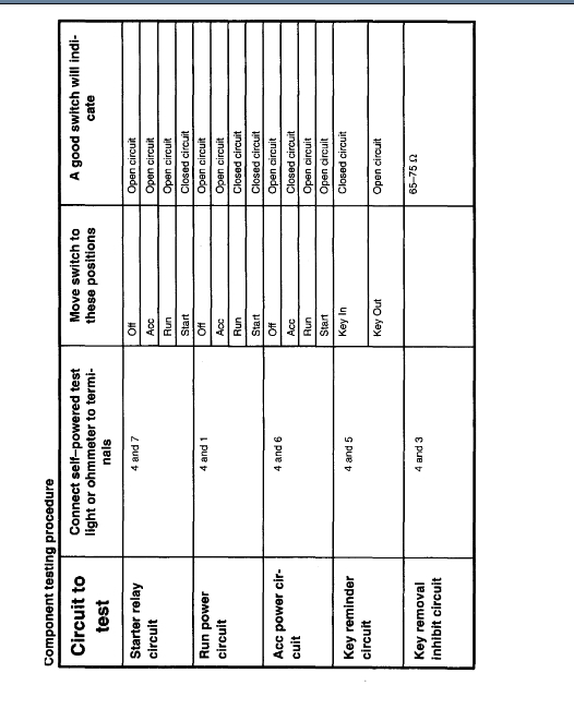 Okay, that's good. Your battery is about 75% charged, so it's not the problem and Fuse 8 is okay. So let's work our way back to the starter from the battery. Next on the list is going to be the ignition switch. In the diagrams down below I have included the factory troubleshooting guide for your vehicle's ignition switch. Please go through this guide and get back to us with what you are able to find out.