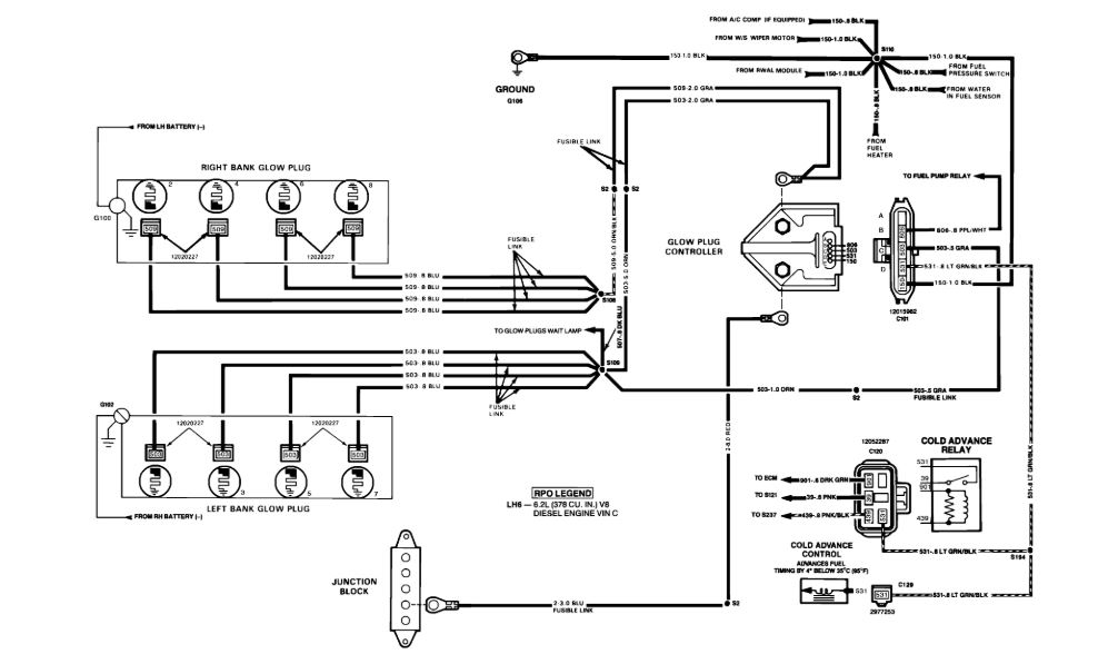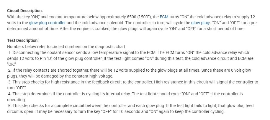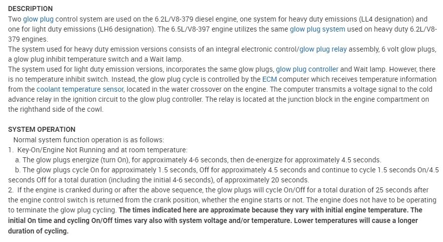 The system is controlled by the glow plug module. it will turn on and off the glow plugs. The amount of times depends on the signal from the temperature sensor. The colder the motor, the more time the plugs are used.
