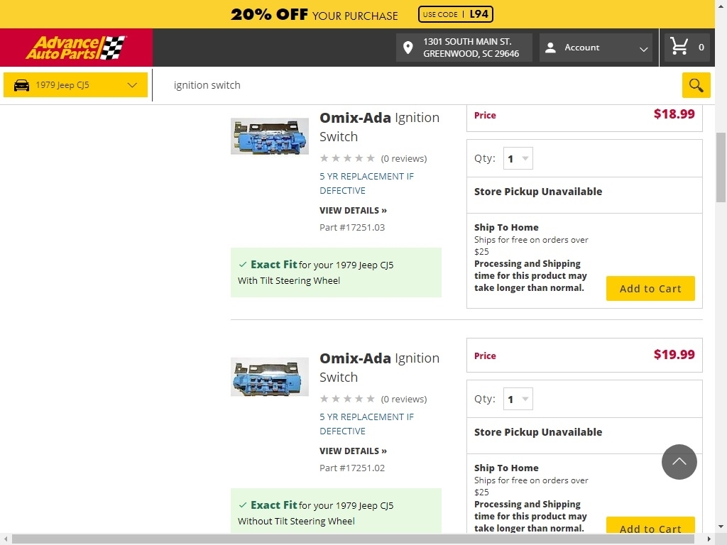 pic 2) This just 2 of several other brands at Advance Auto Parts. I'm showing you in the pic that there are 2 different switches. One for "tilt steering" the other for a "standard column". You must use the correct one!