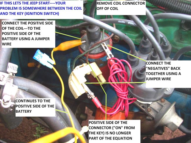 Man this thing is driving me nuts. So I go get a new battery today and put it in and it turns over great but won’t fire so it’s file or coil I am thinking. Love my old Jeep and I will be glad when I know all of it’s problems.
