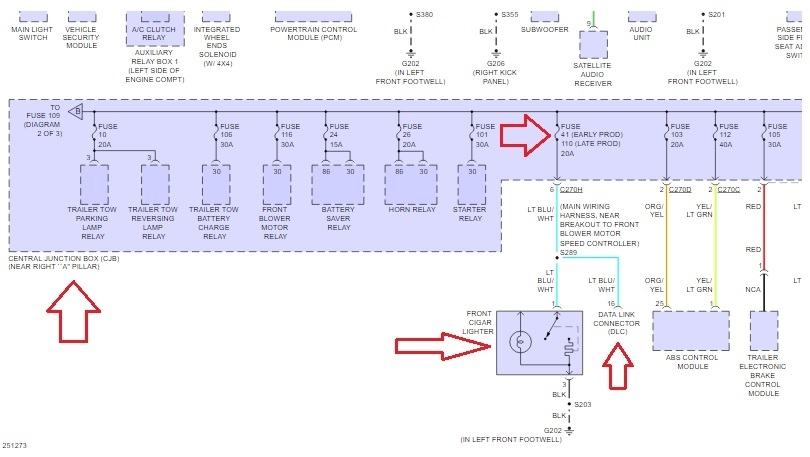 I replaced the 110 fuse and the 41still no OBD port still no cigarette lighter, still no 12 volts on the dash. None of the three are working still. One month ago I had the junction box replaced because the gauges and A/C kept flickering on and off. My friend said sounds like the j Box was bad so replaced had it checked out. It was the alternator. Would this maybe be a cause also? My truck manufacturers date is 11/06 which mean it is a early 2007 I believe.
