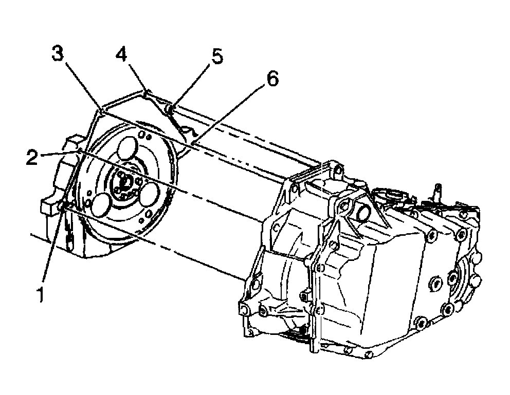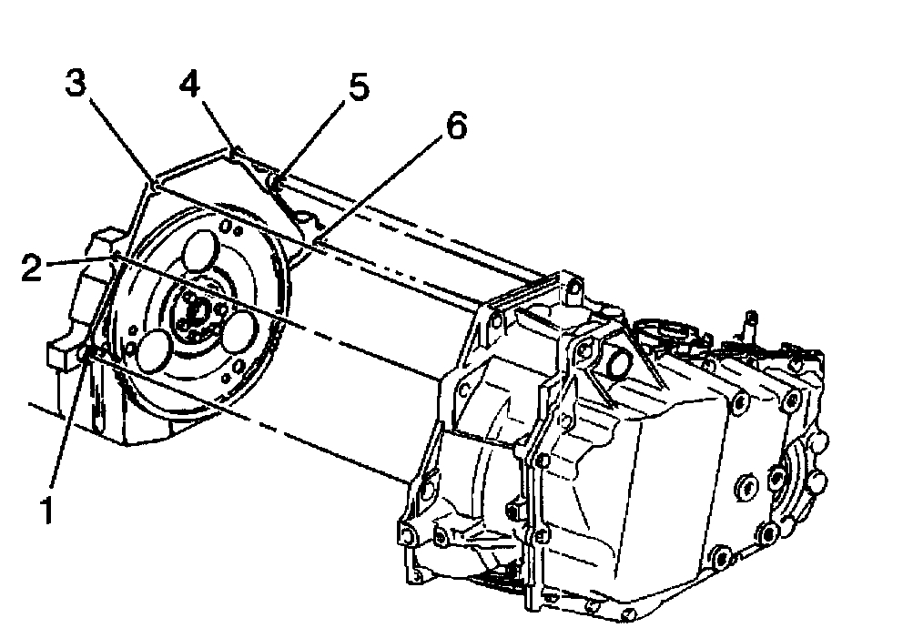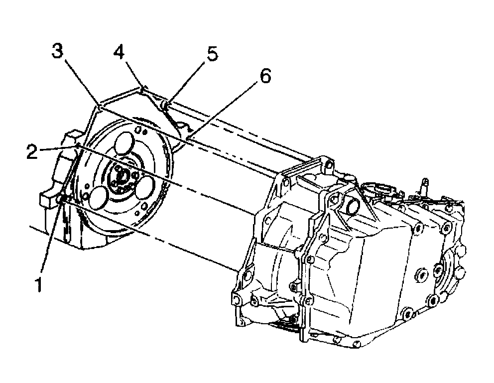 11. Remove the top four bell housing bolts (2, 3, 4, 5).
